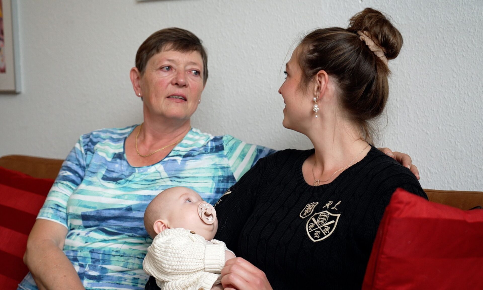 Lotte rækker ud efter sin datters hånd, og begge lade blikket hvile på spædbarnet i Rikkes skød – det yngste af Lottes elskede børnebørn, og en af dem, som hun en dag, måske om få år, ikke vil kunne genkende mere. Smerten i den erkendelse er stor. Men stor er også styrken af den kærlighed, som lyser mellem de tre og gør øjeblikket til en af utallige smukke scener i DR’s nye dokumentarserie, som har premiere i slutningen af august.