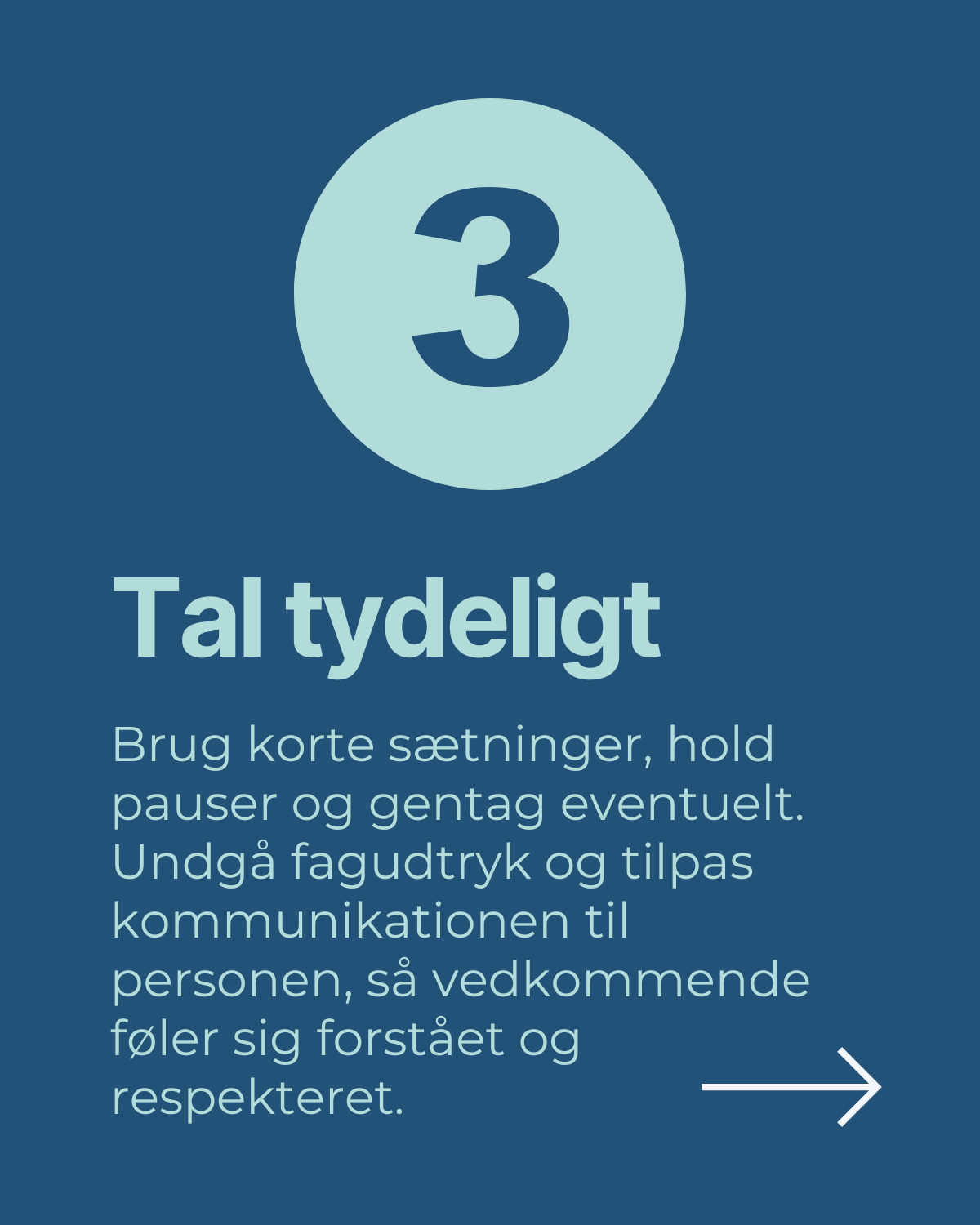 Disse tre handleråd er en del af indsatsen omkring demenssymbolet, og er en håndsrækning til os alle, når vi møder mennesker med demens på vores vej.