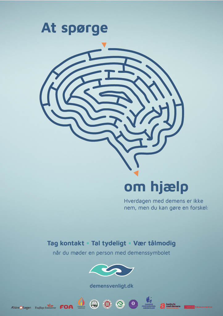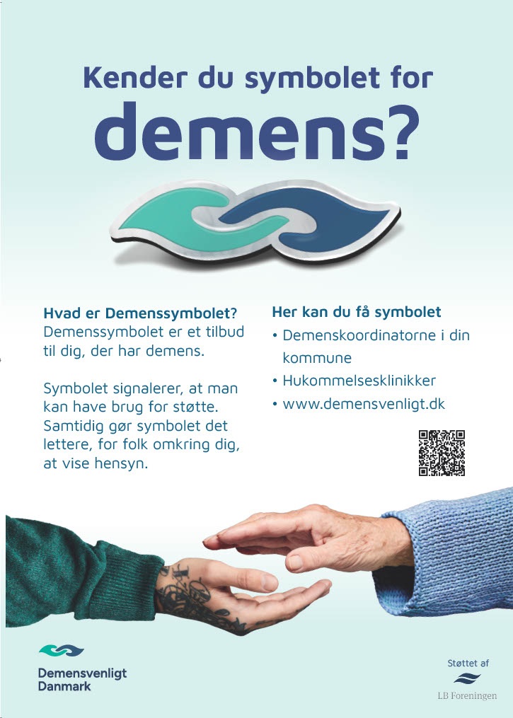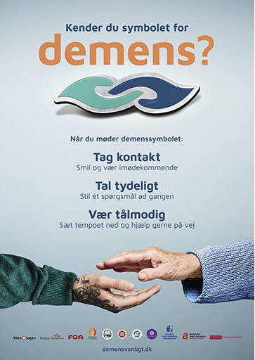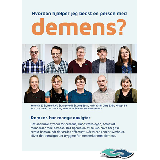 Plakaten øger kendskabet til demenssymbolet og de tre handleråd. Den kan bruges ved arrangementer og events og kan hænge i både for- eller baglokaler.