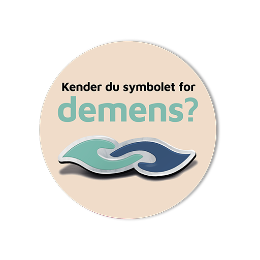 Klistermærke med teksten: Kender du symbolet for demens? Det kan bæres på tøjet for at skabe synlighed om demenssymbolet eller til at identificere sig som pårørende, frivillig eller arrangør af et event.