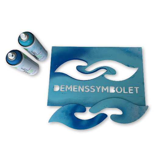 En skabelon, handsker, guide og to spraydåser med maling, så man kan spraymale demenssymbolet på fx fortove og mure. Malingen er kalkbaseret og vaskes væk over tid. Rækker til ca. 40 demenssymboler. (Max 1 sæt).